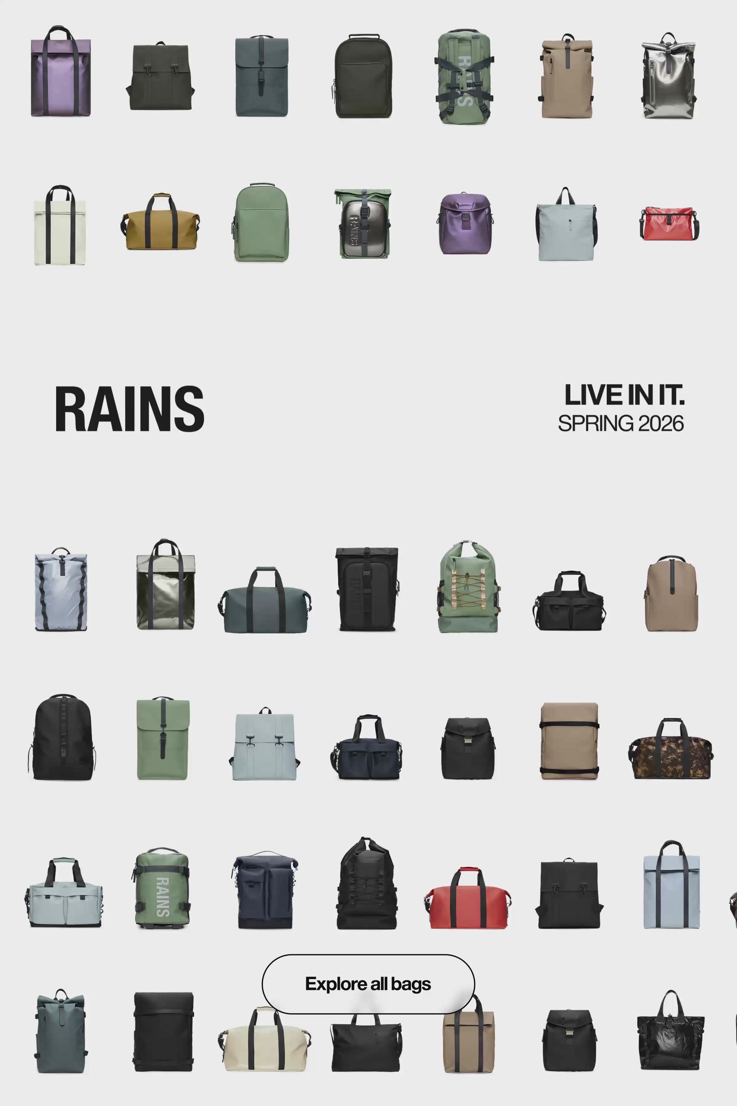 Rains a lancé une collection complète de vêtements, sacs et accessoires imperméables. Aujourd'hui, chaque collection reprend le même esprit en offrant un mélange de modèles de vêtements de pluie remis au goût du jour et des solutions de vêtements de pluie originales, uniquement disponibles chez Rains.