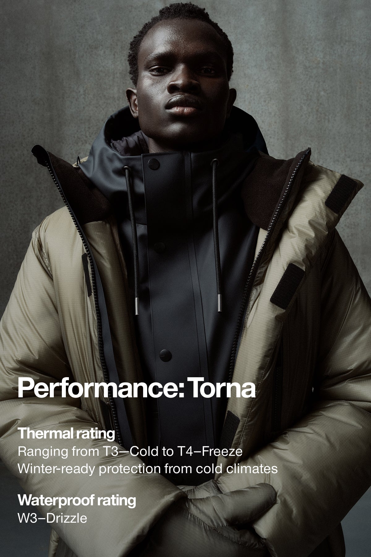 Torna est conçu pour les journées d’hiver froides et humides. Il est fabriqué en nylon ripstop résistant et imperméable, avec une isolation épaisse qui retient bien la chaleur. Des cordons ajustables et des coutures soudées offrent une protection supplémentaire contre le vent et les intempéries. Un extérieur technique au look épuré et premium.
