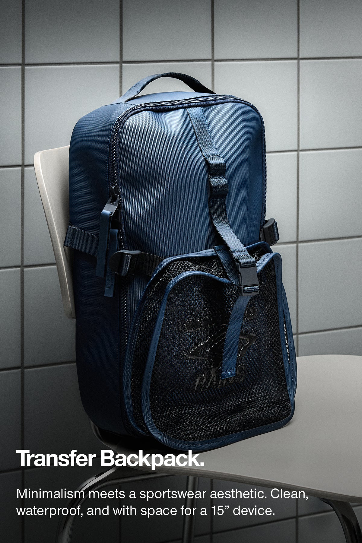 The minimal kit bag. Waterproof, with a mesh front pocket for easy access to your belongings.