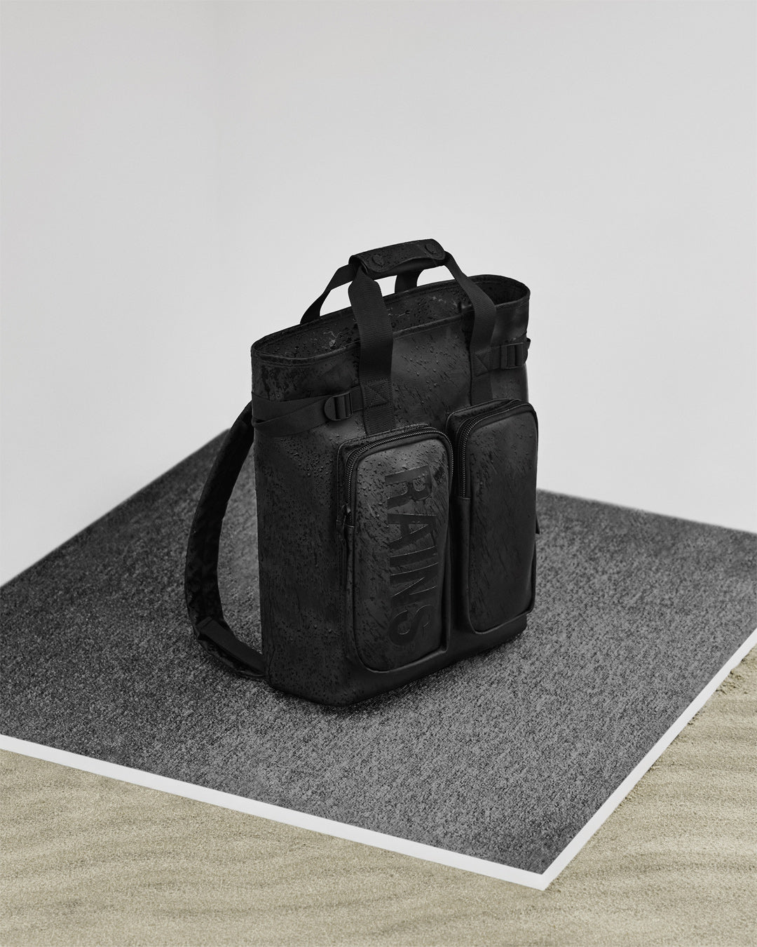 Rains’ answer to traveling light. Cut from waterproof PU.