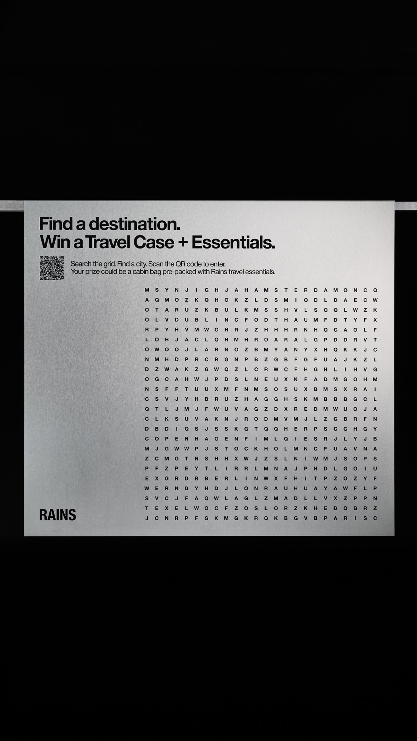 *running in 25 Rains Stores globally, excluding Rue de temple, Guichard, Antwerp, Stockholm Götgatan, Shanghai, Bleecker.